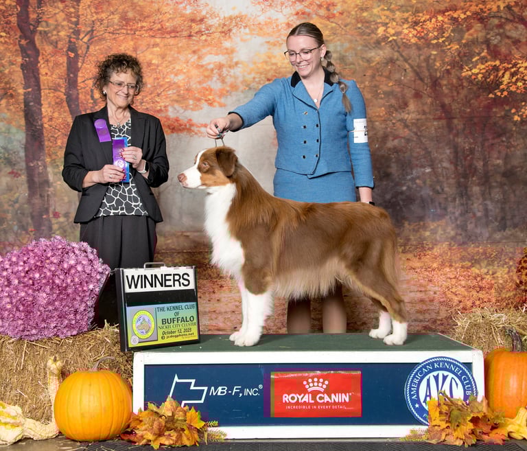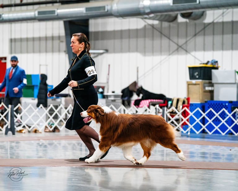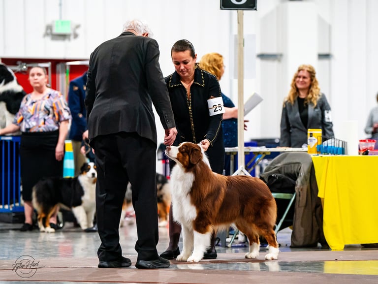 MBISS AKC GCHS ASCA CH Silverwood Flambé of Limelite x GCH AussiePride Lucy Liu